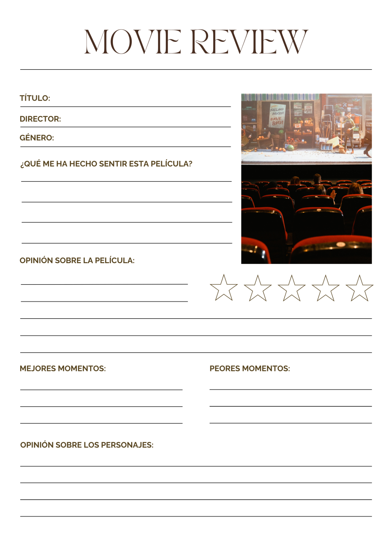 Utilizando esta plantilla, escribe tus argumentos para hacer una crítica de tu película favorita. Puedes escribir en pareja.