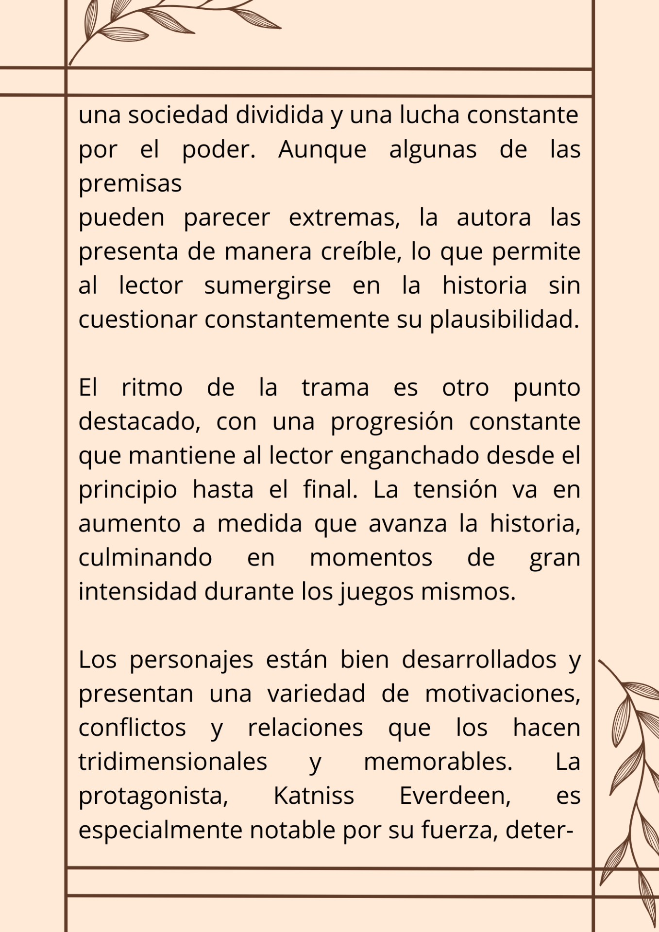 - El tercer párrafo, a modo de cierre reafirma la tesis inicial; por ende el texto posee una estructura encuadrada (tesis-argumentos-tesis).